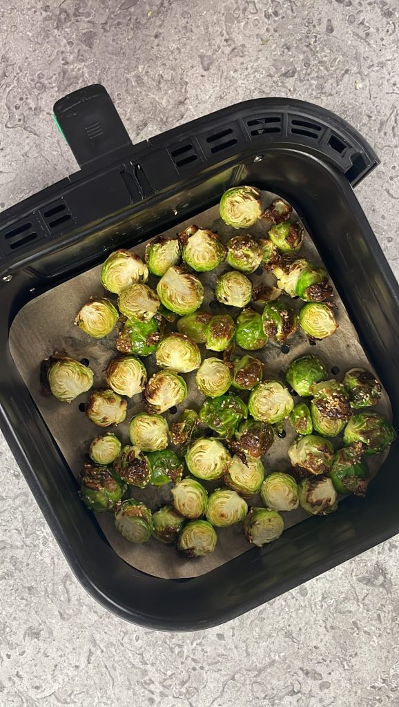 Na 15 minuten zijn de spruitjes in de airfryer klaar om op tafel geserveerd te worden.