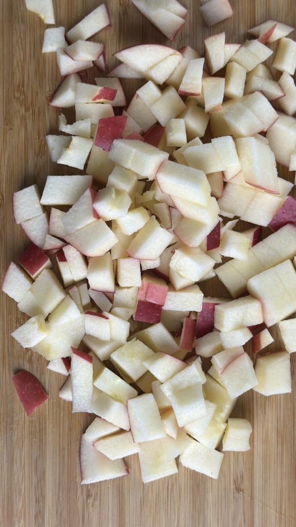 • Begin de bereiding van de varkensstoofpot met appels en uien in slowcooker met de appel.
