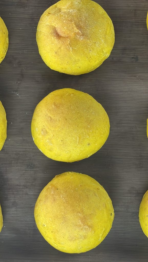 Een eenvoudig thuis te maken deeg, met een warme kleur en een citrusachtige geur die je vanaf de eerste hap verovert. De gestoomde pompoen zorgt voor zachtheid en zoetheid, terwijl de schil en het sap van de sinaasappel een frisse en lichte noot toevoegen die perfect samengaat met de rest van het deeg.