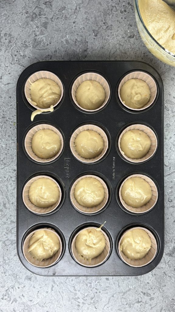 • Leg in de holtes van een muffinvorm de papieren vormpjes.