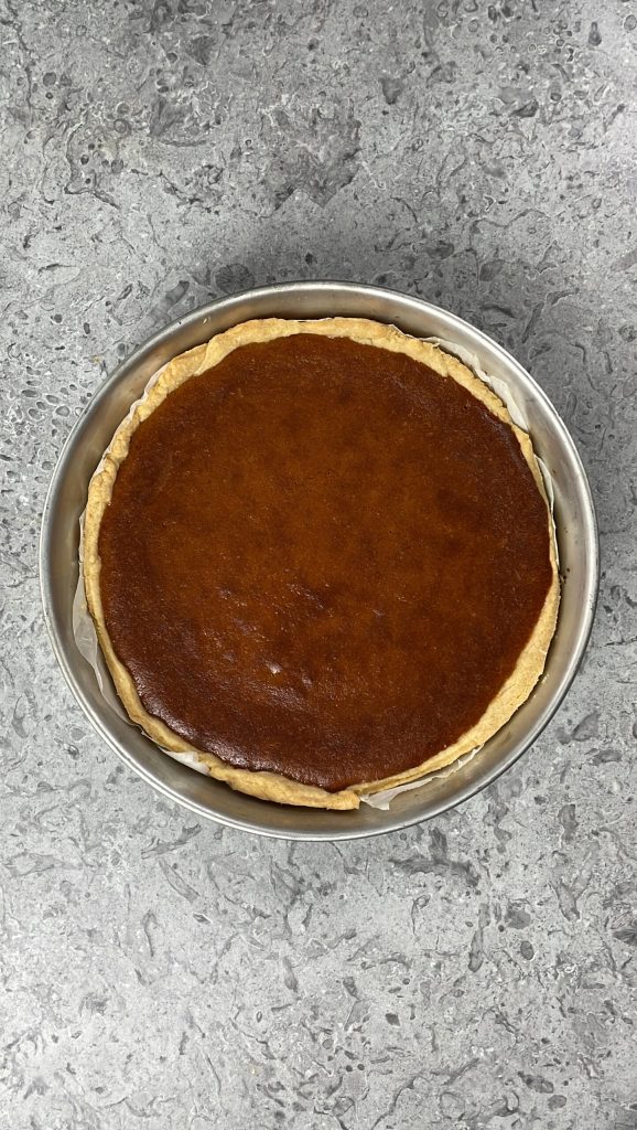 Haal de Pompoentaart uit de oven en laat hem afkoelen voor je het serveert.