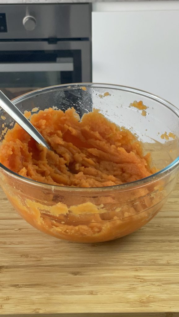 Zoete aardappelpuree, een origineel en smakelijk bijgerecht op basis van zoete aardappelen of bataat.