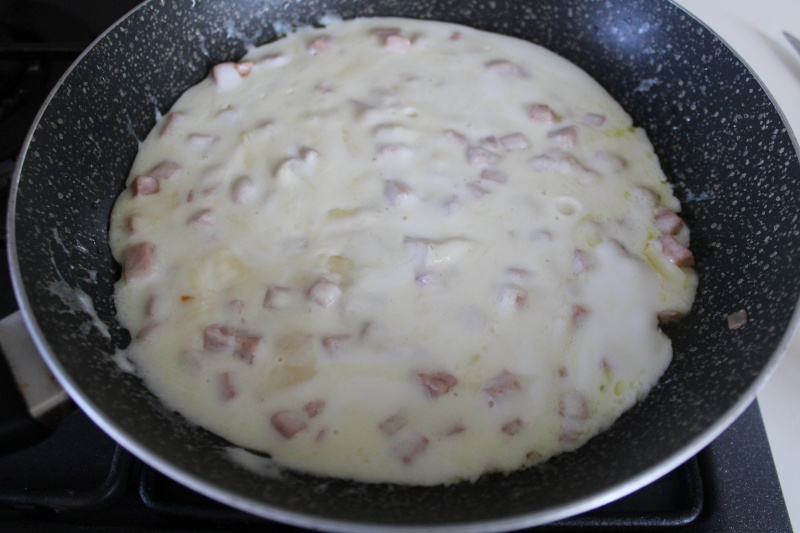 – Zout het pastawater niet te veel! Fontina en ham zijn al van zichzelf vrij zout.