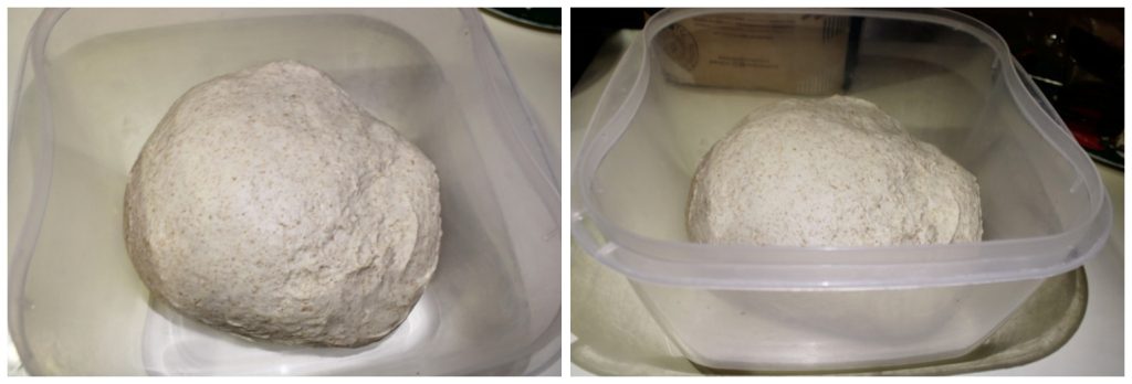 Rond 15.00 – 16.00 uur verdeel ik het in ballen en laat ze rusten in een afgedekte container voor een tweede rijzing.