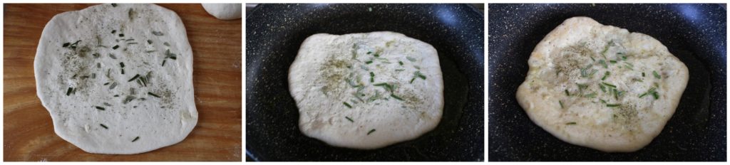 Daarna, druk je ze plat met een deegroller, bestrooi met kruiden naar keuze en bak ze in een warme, licht geoliede pan aan beide zijden.