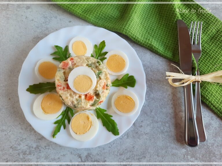 • Bereid eerst de Russische salade, u kunt uw favoriete recept gebruiken, maar als u wilt, vindt u op deze link de mijne, met de procedure: Russische salade – zelfgemaakt.