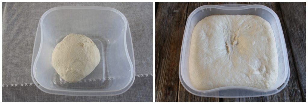 Zodra het deeg goed is gekneed, plaats je het in een container en laat je het bijna 2 uur rijzen op een warme plek, afgedekt en uit de tocht. Na deze tijd zou het deeg in volume moeten zijn verdubbeld.