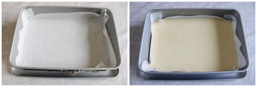 Bekleed een bakplaat met bakpapier, giet het mengsel erin en maak het vlak.