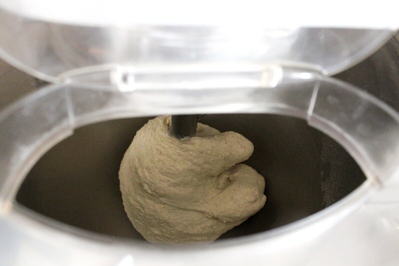 – Kneed krachtig gedurende minstens 10-15 minuten met de hand, of ongeveer 7-8 minuten met een mixer. Het deeg moet glad, elastisch en goed verbonden worden (gladde en niet plakkerige oppervlakte).