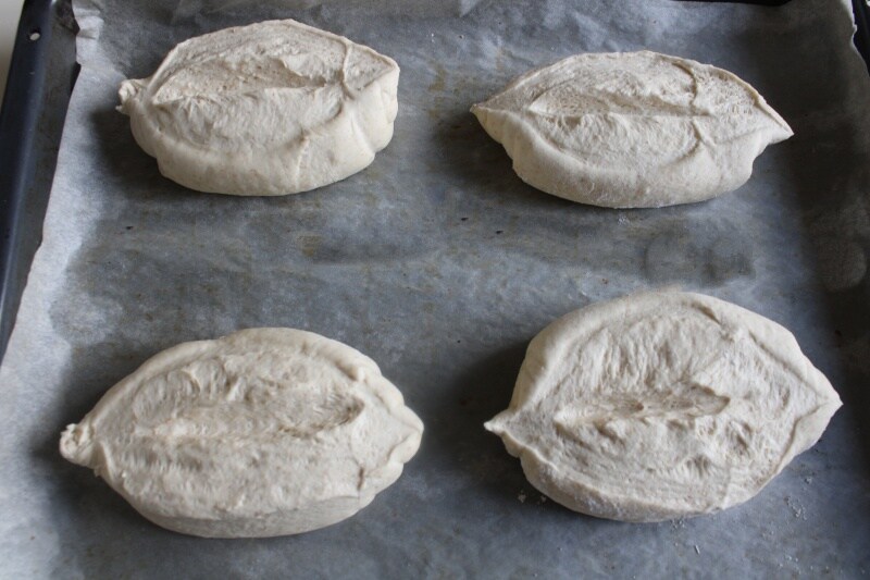 Verwarm de oven voor op 200°C. Leg de broden voorzichtig op een bakplaat bekleed met bakpapier en bak, in een voorverwarmde oven, ongeveer 30-35 minuten.
