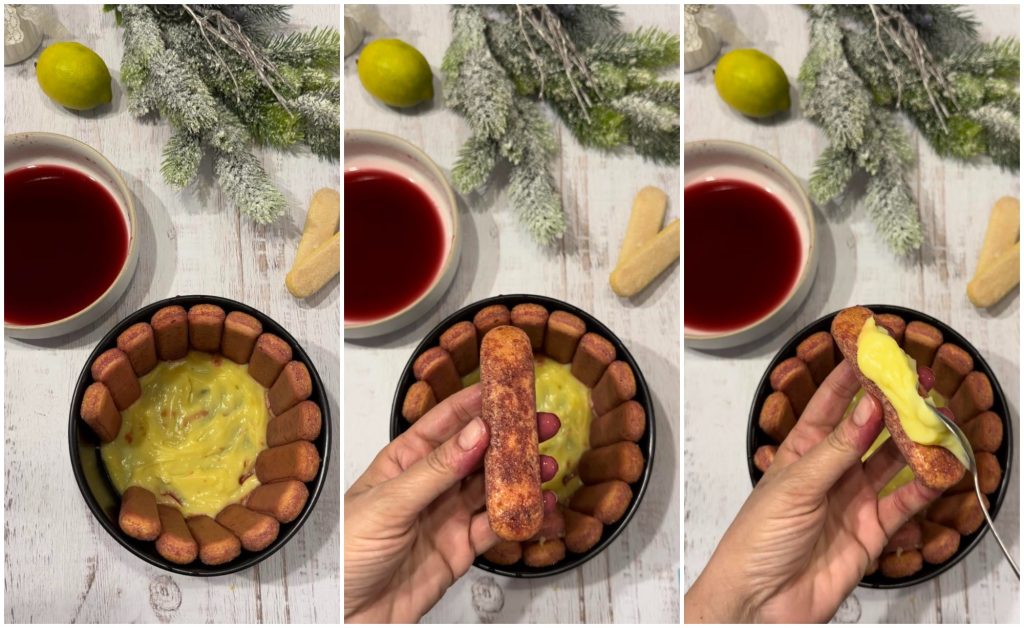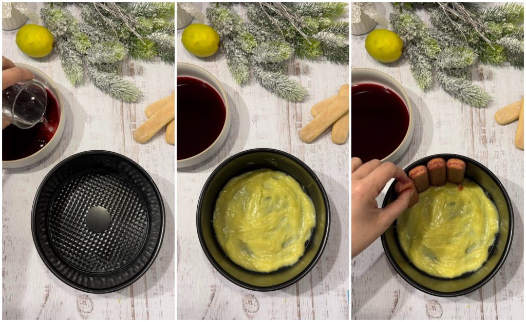 Neem de lange vingers en drenk ze, een voor een, in de verdunde Alchermes in water (je kunt het ook puur gebruiken).