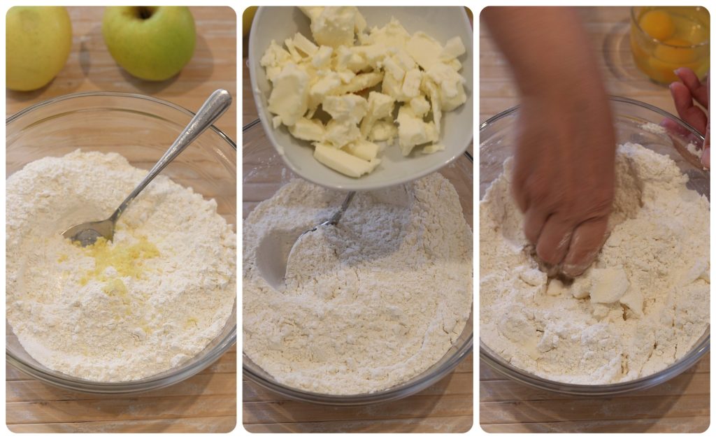 • Meng de boter met je handen om het door de bloem op te laten nemen en het mengsel korrelig te maken.