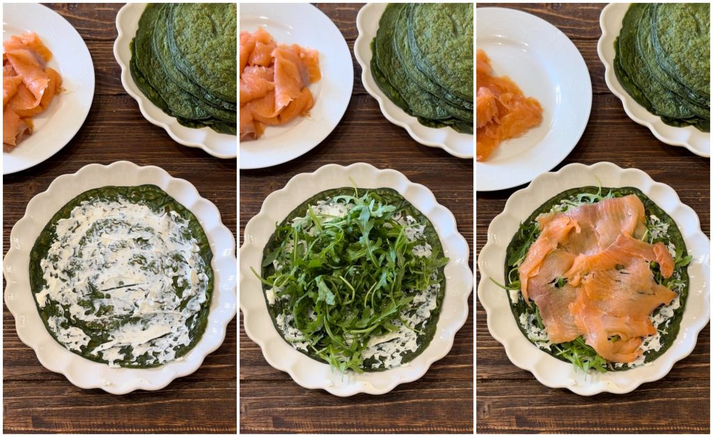 Of, zoals ik het graag heb, kunnen we de spinaziecrepes als brood gebruiken, als waren het “piadine”. Voor de vulling laat ik je vrij om de ingrediënten te gebruiken die je het lekkerst vindt!