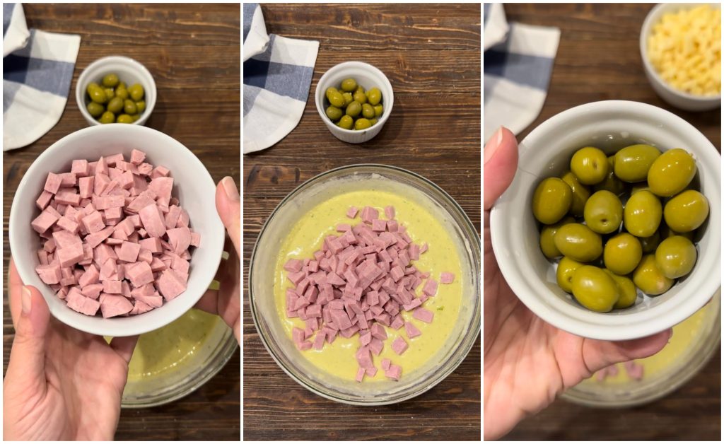 Het enige wat je hoeft te doen is zowel de ham als de kaas in blokjes te snijden en binnen 10 minuten heb je het deeg klaar om in de vorm te gieten!