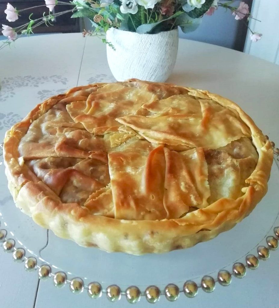 De bladerdeeg pizza met uien en worst is een heerlijke hartige taart, te serveren op elk moment en bij elke gelegenheid. Het is gemaakt met dunne lagen pasta matta al vino, licht als een wolk, en je kunt het ook personaliseren met andere vullingen naar eigen smaak.