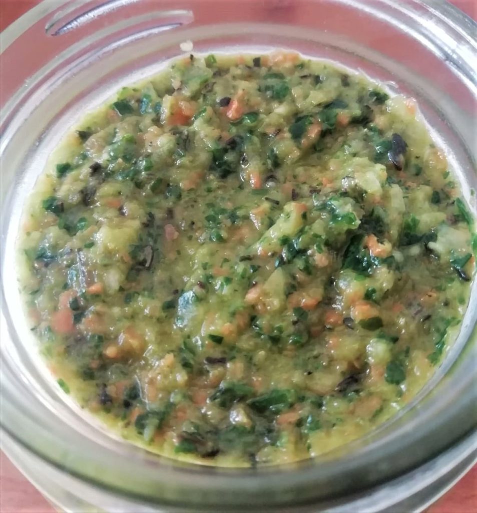 De hoeveelheid is voor een pot van 500 gram die lange tijd in de koelkast bewaard kan worden en je zult niet meer zonder willen, net zoals met de kant-en-klare soffritto in pot.