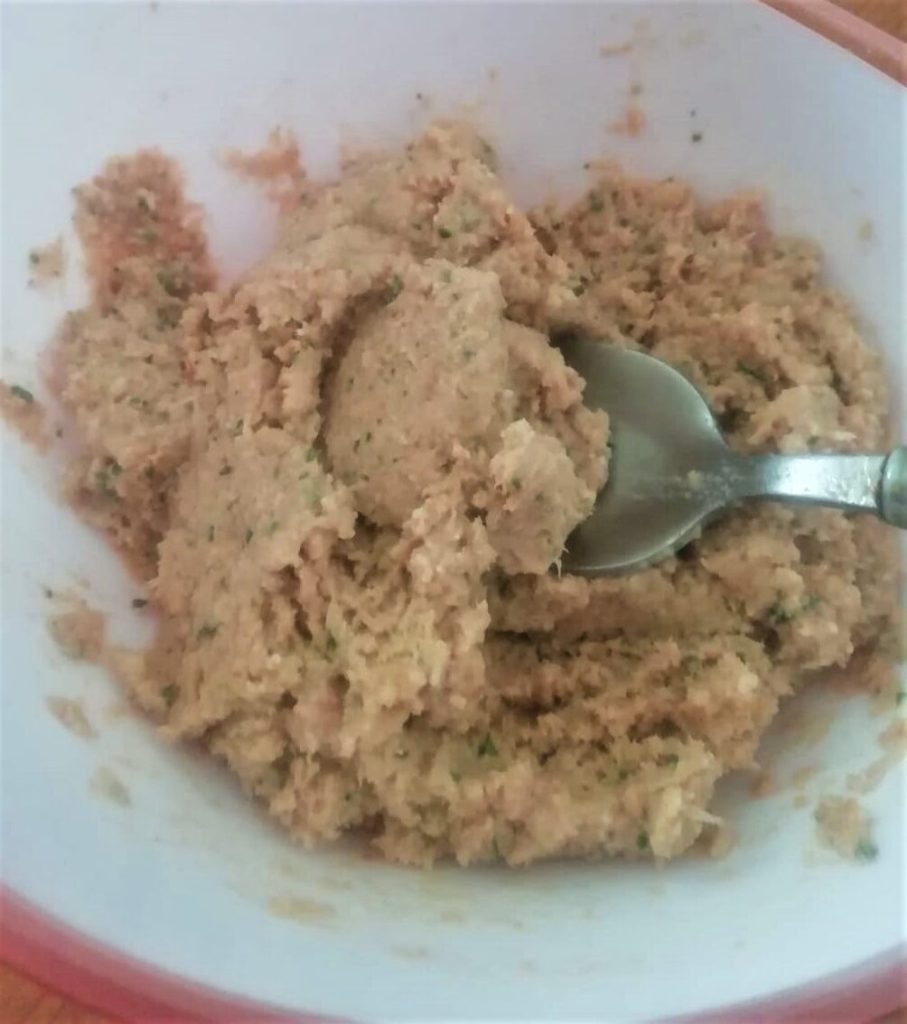 Giet het mengsel in een kom en voeg het paneermeel en een snufje zout toe. Proef om de smaak te corrigeren en voeg een snufje gemalen zwarte peper toe.
