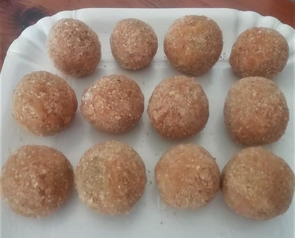Voor een dikkere en krokantere korst herhaal je de laatste twee stappen een tweede keer, in het losgeklopte ei en het paneermeel. Vorm dan met je handen een ronde en gladde bal.