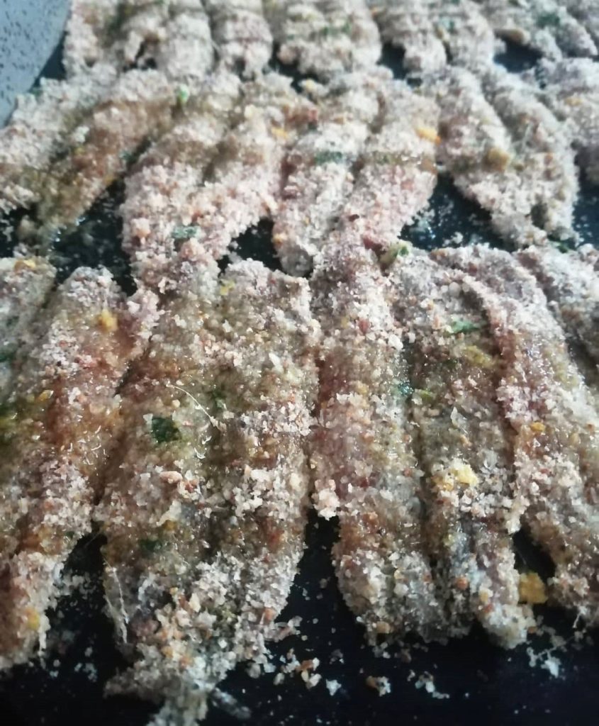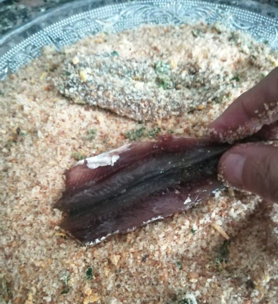 In dit recept worden de gemarineerde gebraden ansjovis gepaneerd met een mengsel van gekruide broodkruimels en daarna gebakken, waardoor ze perfect zijn voor degenen die niet van gefrituurd voedsel houden en de voorkeur geven aan een lichte goudbruining. Bovendien is de marinering van de ansjovis licht en delicaat en zeer smakelijk. Als je van ansjovis houdt, probeer ook de aardappel en ansjovis taart, heerlijk.