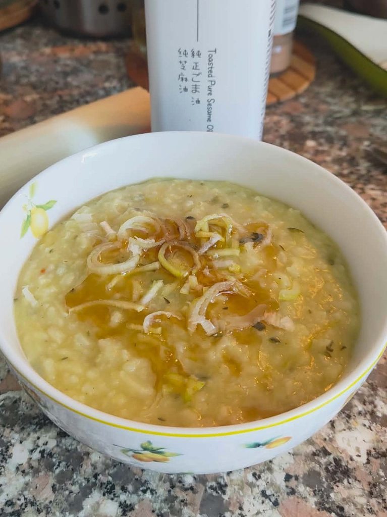 KOREAANSE VEGAN JUK: Romige Rijstpap met Courgette, Gember en Prei