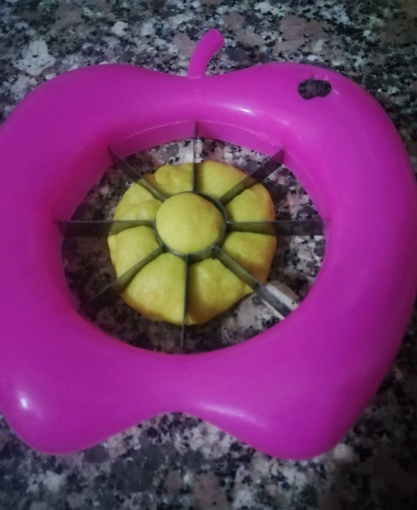 Kennen jullie het deeg voor de ovengebakken taralli zonder koken dat ik een tijdje geleden heb gemaakt? Goed, klik dan op de link om het recept te zien en zorg voor een klein keukengereedschap, namelijk die voor het snijden van appels in partjes (de foto vindt u in de procedure van het recept).