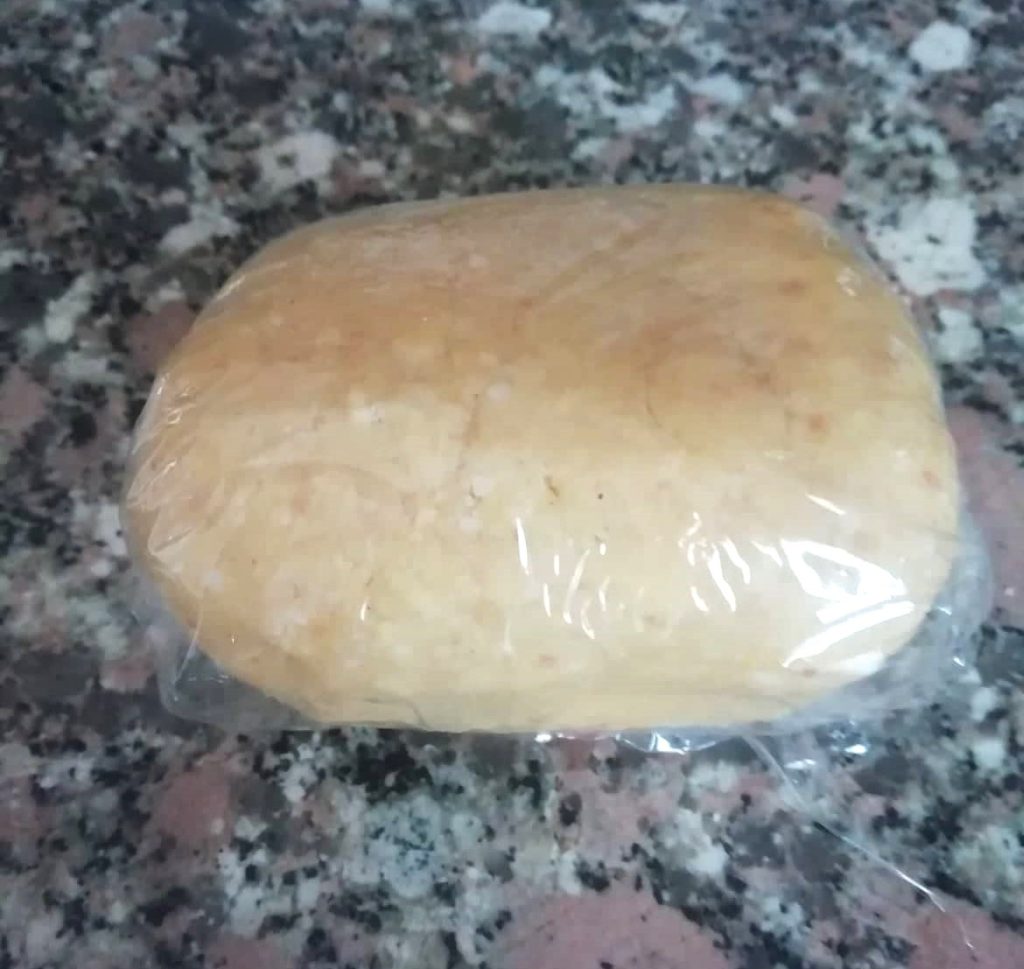 Verzamel het deeg en laat het minstens 30 minuten bij kamertemperatuur rusten, gewikkeld in plasticfolie.