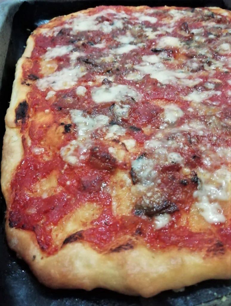 Of je nu van een dunne en knapperige of van een dikke en zachte pizza houdt, de pizza op de bakplaat met aubergines en Parmezaanse kaas is een onweerstaanbare lekkernij. Dit recept met een hydratatie van 70% is mijn favoriet om twee redenen: ten eerste omdat het dun en knapperig is, ten tweede omdat het een korte rijstijd heeft zonder mixer.