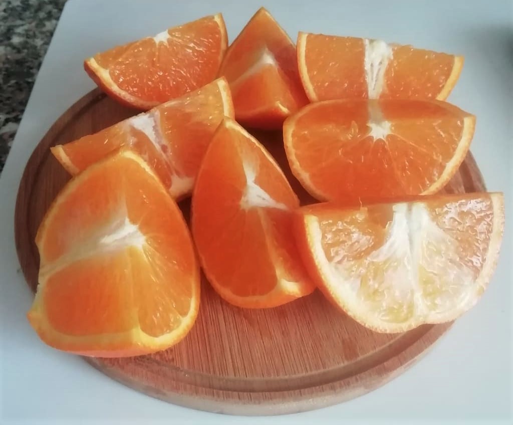 • Kies 1 of 2 gezonde, biologische sinaasappels, omdat je alles zult gebruiken, zowel het vruchtvlees als de schil. Was ze goed onder stromend water en snijd ze in stukken, verwijder de pitten.
