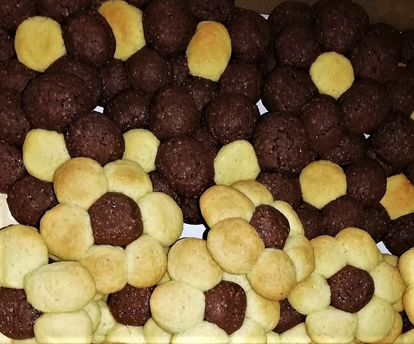 Het zijn knapperige zanddeegkoekjes zonder boter in de vorm van kleine bloemetjes met vanille en cacao. Heerlijk voor de vieruurtje of het ontbijt, en ze zullen zowel volwassenen als kinderen bevallen. Bij ons thuis zijn ze nooit genoeg, ze zijn meteen op, maar omdat ze makkelijk en leuk zijn om te maken, bak ik er veel en bewaar ik ze in een glazen koekjespot.