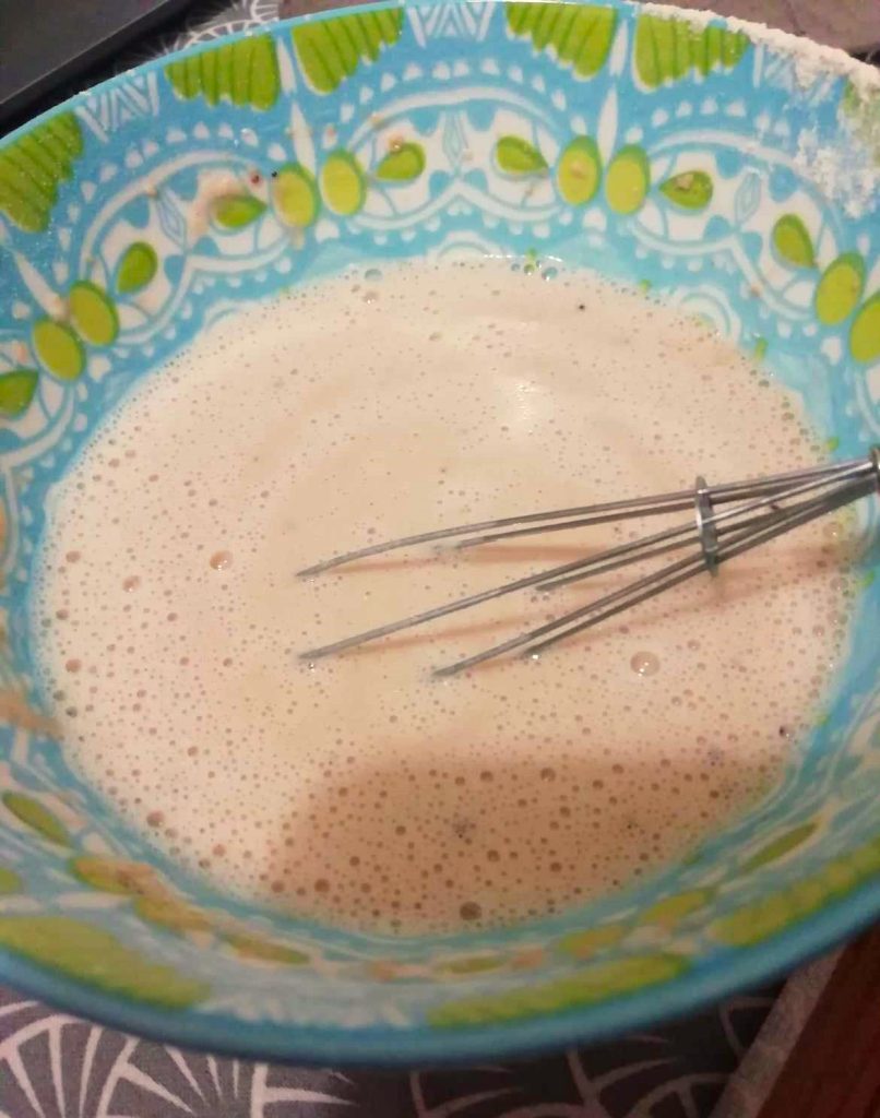 Meng de poeders met elkaar, voeg dan 100 ml water toe en meng het goed.