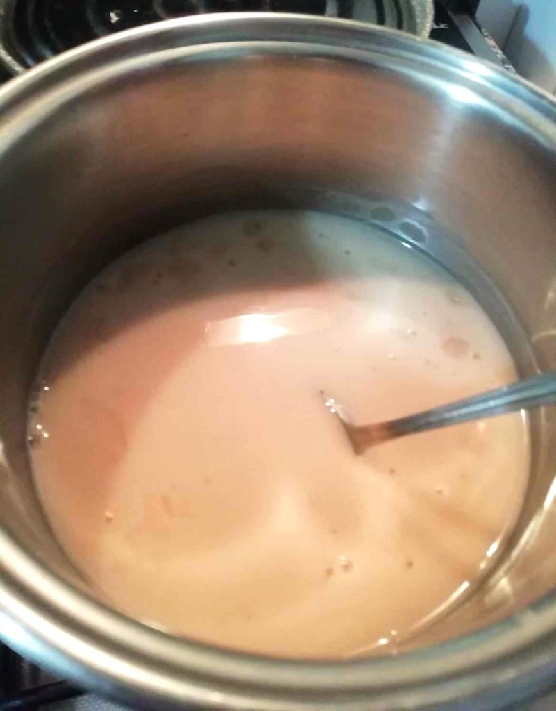 • Zet het resterende water, 400 ml, in een pannetje op het vuur op middellaag vuur.