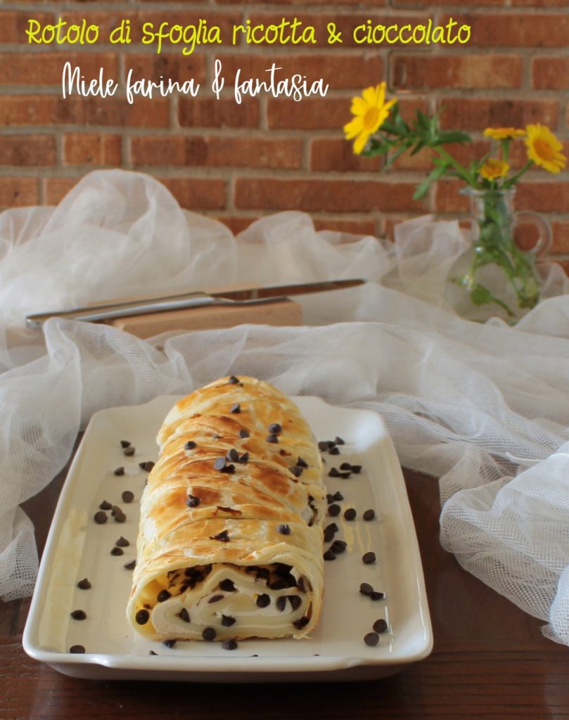 De bladerdeegrol met ricotta, sinaasappel en chocolade is een taart die zeer smakelijk en gemakkelijk is en in korte tijd kan worden bereid. Het is een vrij snel recept, geschikt voor elke gelegenheid, zelfs als er onverwachte gasten zijn. Ricotta, sinaasappel en chocolade vormen naar mijn mening een werkelijk heerlijke combinatie. Aanbevolen om het een paar uur van tevoren te bereiden, zodat de vulling de smaken en aroma’s ten volle tot uitdrukking kan brengen.