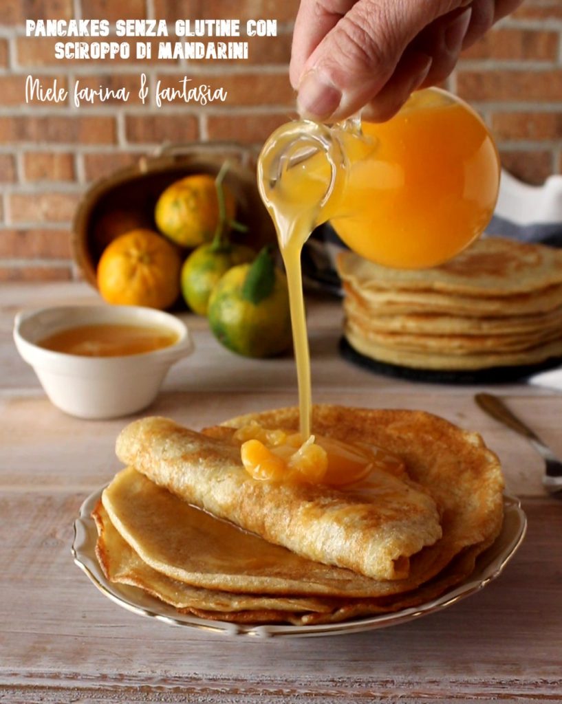 Zin in pannenkoeken? Vandaag stel ik je deze heerlijke en makkelijke pannenkoeken glutenvrij voor (maar die je ook kunt maken met traditionele meelsoorten) geserveerd met een geurige en makkelijke mandarijnensiroop in plaats van ahornsiroop; het is mijn Italiaanse versie van een klassieker uit de Angelsaksische traditie.