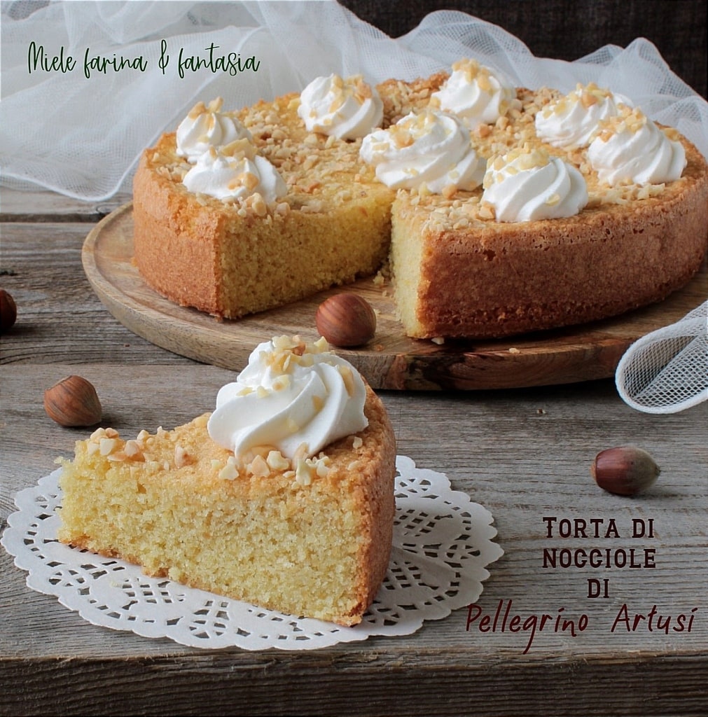 Pellegrino Artusi, in zijn boek “Wetenschap in de keuken en de Kunst van het goed eten” spreekt over de “Gateau à la noisette”, een buitengewone taart op basis van hazelnoten en amandelen, zo lekker dat, volgens de auteur, het een grote naam verdiende. Artusi heeft absoluut gelijk over de heerlijkheid van deze taart. Ook ik zal jullie vandaag vertellen over deze geurige en heerlijke taart, maar ik waarschuw jullie dat ik slechts één wijziging heb aangebracht, namelijk dat ik alleen hazelnoten heb gebruikt; daarom heb ik het hazelnoottaart van Pellegrino Artusi genoemd, omdat het, al is het maar een beetje, niet volledig trouw is aan het origineel. Het is een glutenvrije, ongezuurde taart, heel eenvoudig te maken, waarbij het proces enigszins lijkt op dat van “genoise”. Het is zo zacht dat het puur kan worden genoten, zonder dat het doordrenkt, gevuld of vergezeld hoeft te worden van crèmes en sauzen. Het heeft een compacte maar zachte structuur en porositeit, die bijna in de mond smelt. Om optimaal te kunnen genieten van de geuren en smaken van deze taart, raad ik aan om hem minstens een dag van tevoren te bereiden.