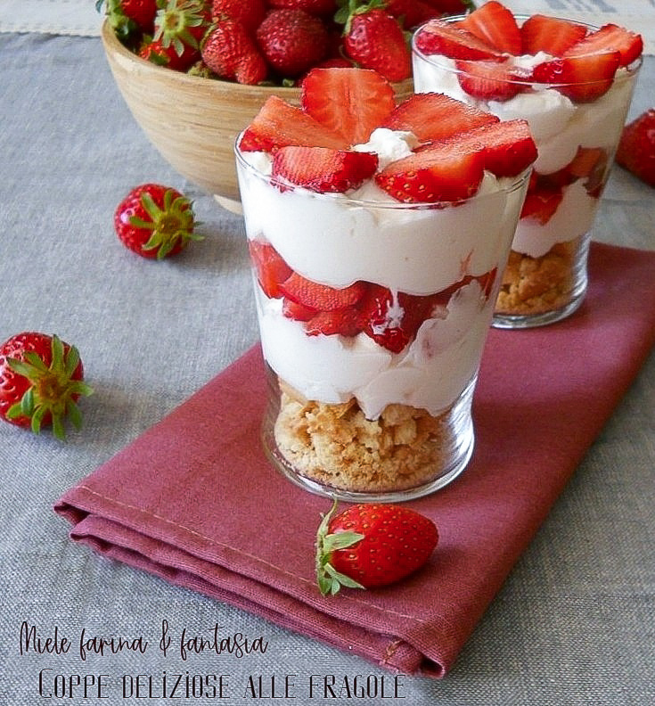 Vandaag hebben we het over een frisse, supersnelle en verrukkelijke nagerecht in porties met een lepel. Het gaat om heerlijke coupejes waarvan het belangrijkste ingrediënt aardbeien zijn. Het is een bijzonder eenvoudig recept zonder kookplaat, totaal niet zwaar, ideaal als afsluiter van een maaltijd of voor een buffet. De coupes kunnen van tevoren klaargemaakt en in de koelkast bewaard worden tot het moment van serveren. We kunnen ze naar smaak personaliseren. Zullen we alvast nadenken over het Moederdagdessert?