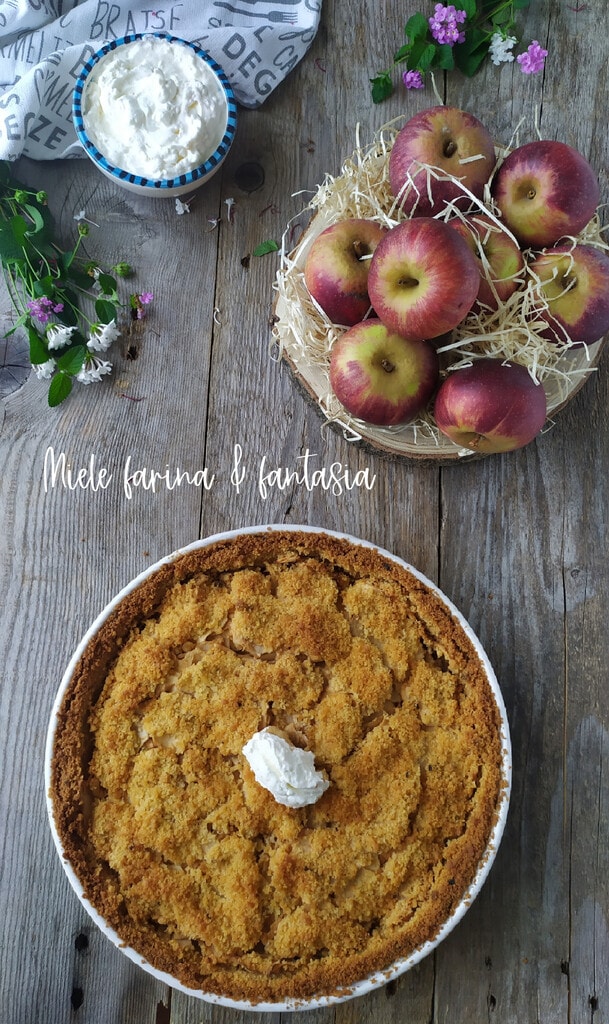 De koekjestaart gevuld met appels is een heerlijk en aromatisch dessert dat is ontstaan uit een “ongeluk”, om het zo te zeggen. De verpakking van een pak koekjes was gescheurd en toen ik het opmerkte, hadden de koekjes al bijna al hun knapperigheid en versheid verloren. Omdat je in de keuken eigenlijk niets of bijna niets zou moeten weggooien, besloot ik ze meteen te gebruiken voor een cheesecake, maar toen, omdat ik een flink aantal Annurca-appels had, typisch voor mijn regio, creëerde ik deze taartbodem van koekjes en boter, net zoals je doet voor de basis van de traditionele cheesecake, en ik vulde deze met appels. Het was een succes; het was zo lekker dat ik het meerdere keren opnieuw heb gemaakt, zelfs met glutenvrije koekjes en verschillende soorten seizoensfruit. Het is een idee dat van pas kan komen als je zonder de essentiële ingrediënten voor een taart zit, of als je een ander dessert dan de gebruikelijke op tafel wilt zetten.