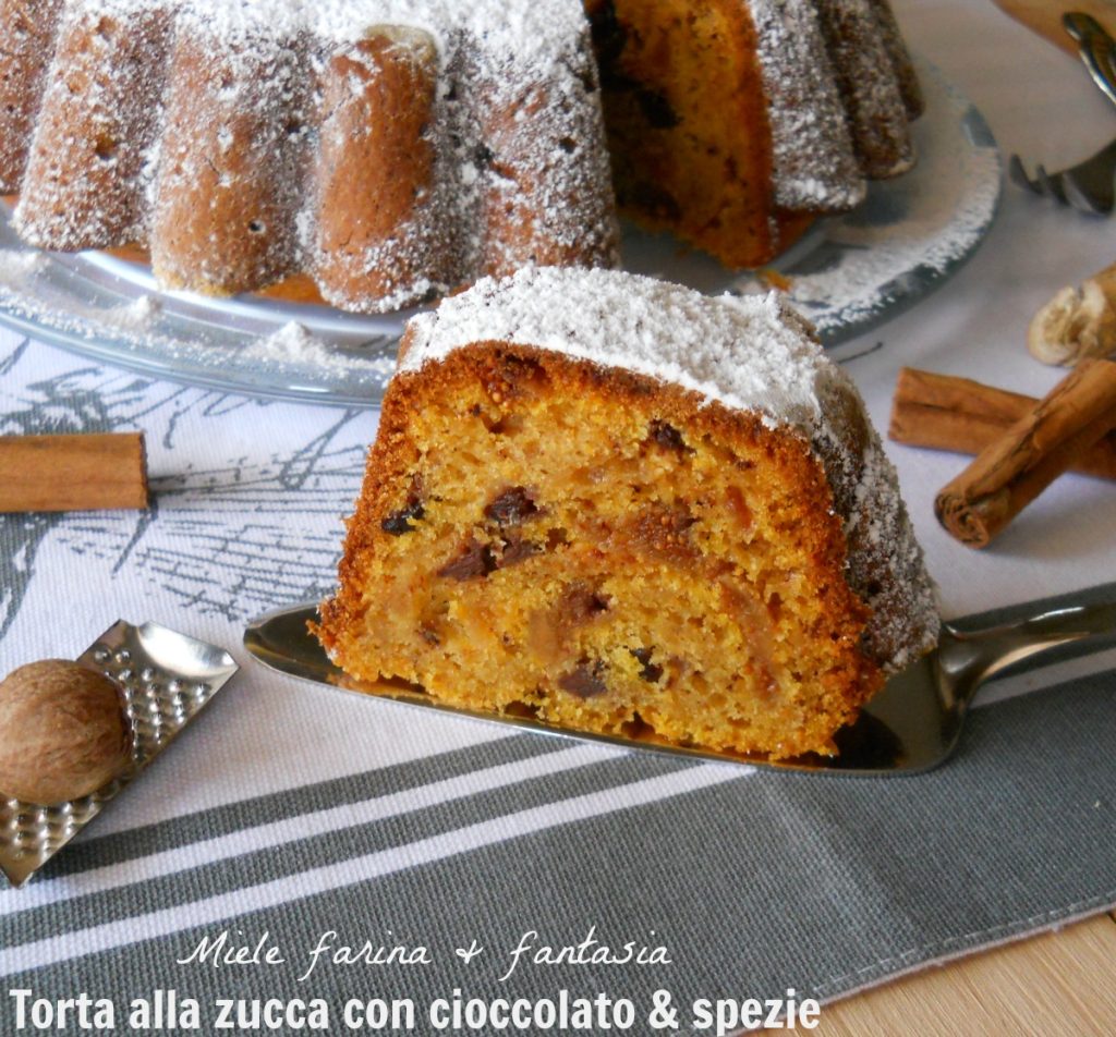 De pompoentaart met chocolade en specerijen is een aromatische, smakelijke, zachte, zoete en perfect vochtige cake, heel makkelijk te maken, zeer verfijnd, ideaal voor belangrijke momenten. Het is een taart die voor elke gelegenheid kan worden bereid, van ontbijt, snack, theepauze, koffie of als cadeau. Het originele recept van deze gekruide lekkernij is van Cinthia Barcomi. Ik heb het originele recept gepersonaliseerd op basis van wat ik al in huis had en naar onze smaak. Naast dat het een echte delicatesse is, kunnen we de pompoentaart met chocolade en specerijen extreem decoratief maken door hem naar eigen fantasie te versieren. Ik raad aan om de taart een dag van tevoren te maken, omdat hij dan nog lekkerder wordt.