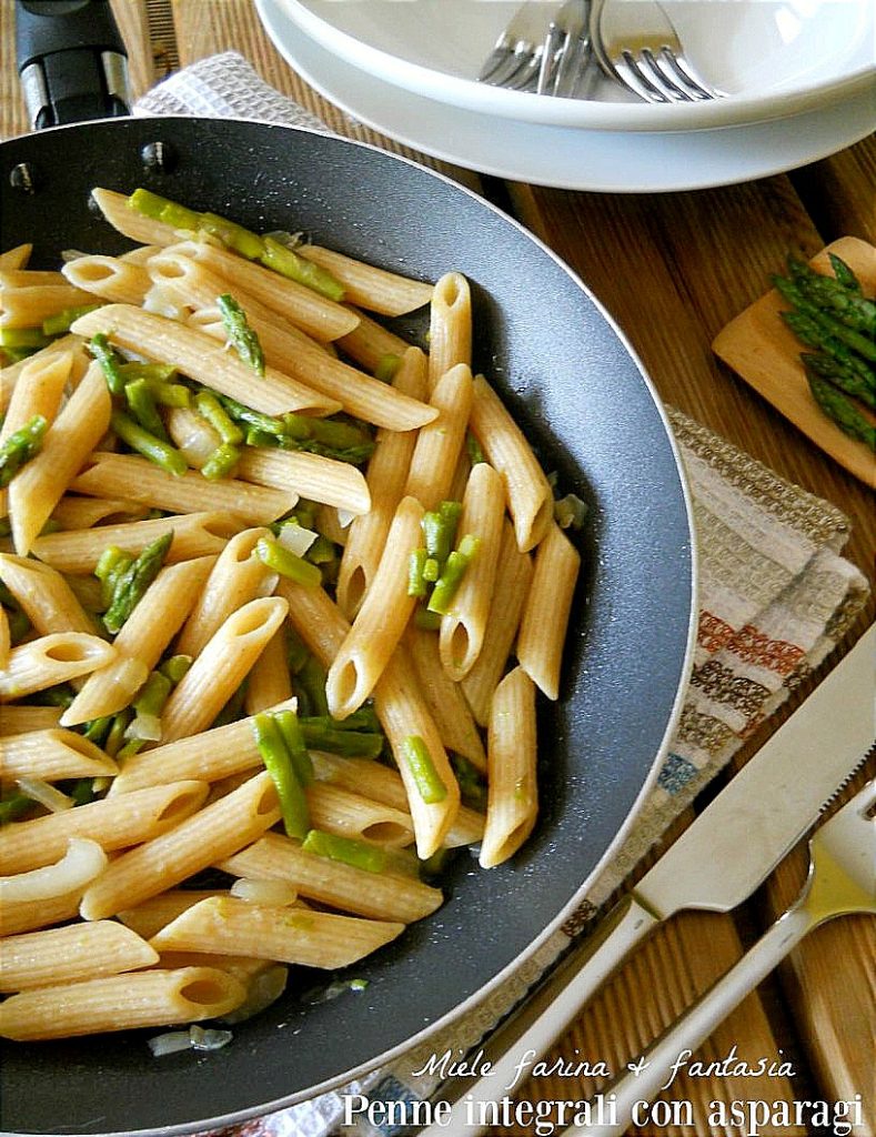 De volkoren penne met asperges zijn erg smaakvol en licht. Het is een hoofdgerecht dat heel gemakkelijk en snel te bereiden is, en dat gepersonaliseerd kan worden door het toevoegen van knapperige pancetta of ham, waardoor het een compleet gerecht wordt. Het is ideaal wanneer je een diner met vrienden wilt improviseren, vooral omdat je, om tijd te besparen, de pasta in hetzelfde kookwater van de asperges kunt koken.