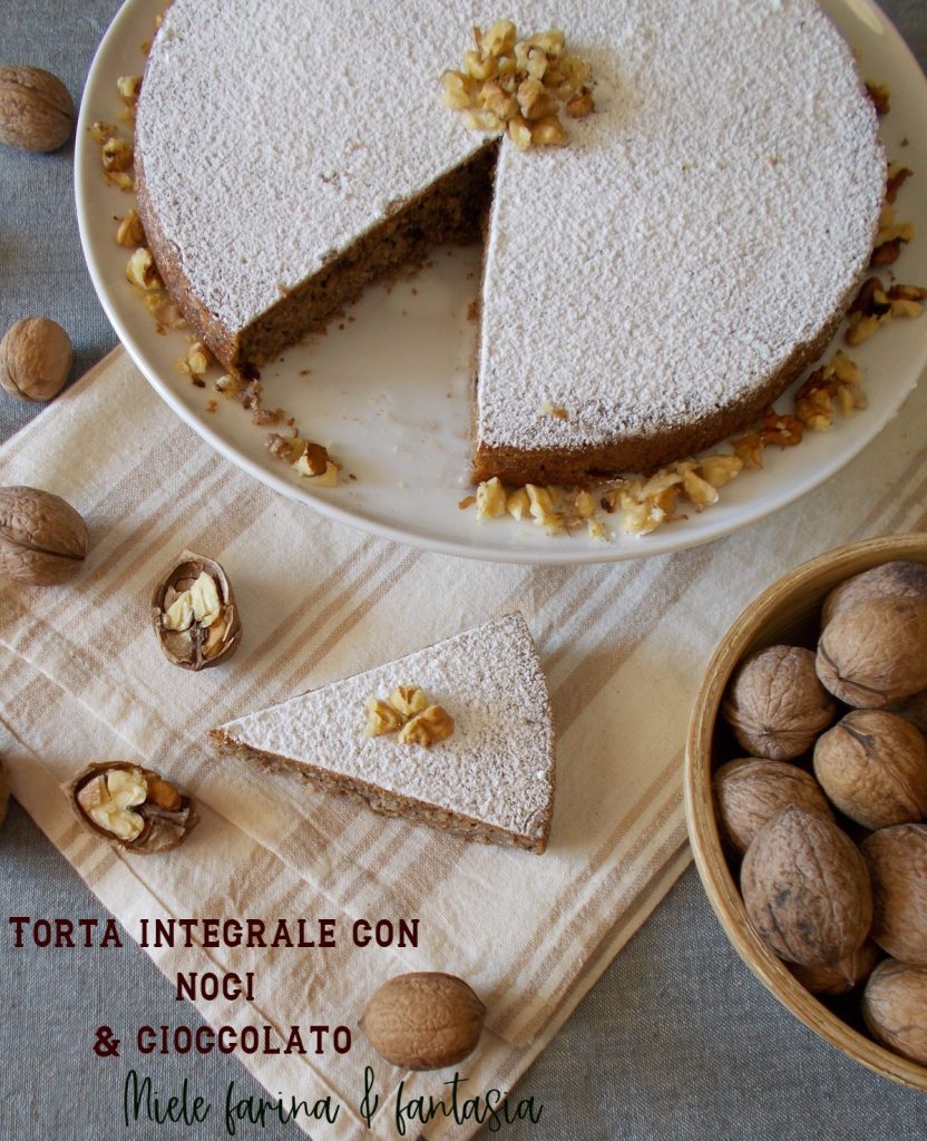 Volkoren walnoten- en chocoladetaart, een lekkernij die in de mond smelt, dankzij een deeg op basis van walnoten en chocolade, wat deze taart een echte traktatie maakt. We kunnen het maken als ontbijttaart of als dessert om te serveren bij de koffie of een lekker kopje thee. Het is een zeer gemakkelijke taart, met de juiste vochtigheid waardoor hij zeer zacht is en zelfs de meest veeleisende smaakpapillen tevreden zal stellen. Volkorenbloem, het ingrediënt dat deze taart een bijzondere toets geeft, past perfect bij zowel walnoten als chocolade, zonder ze te overheersen, ondanks dat het een meer uitgesproken en rustieke smaak heeft dan witte bloem.