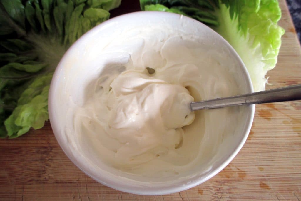 mosterd: 1 theelepel romige mosterd gemengd met 2 theelepels agavesiroop.