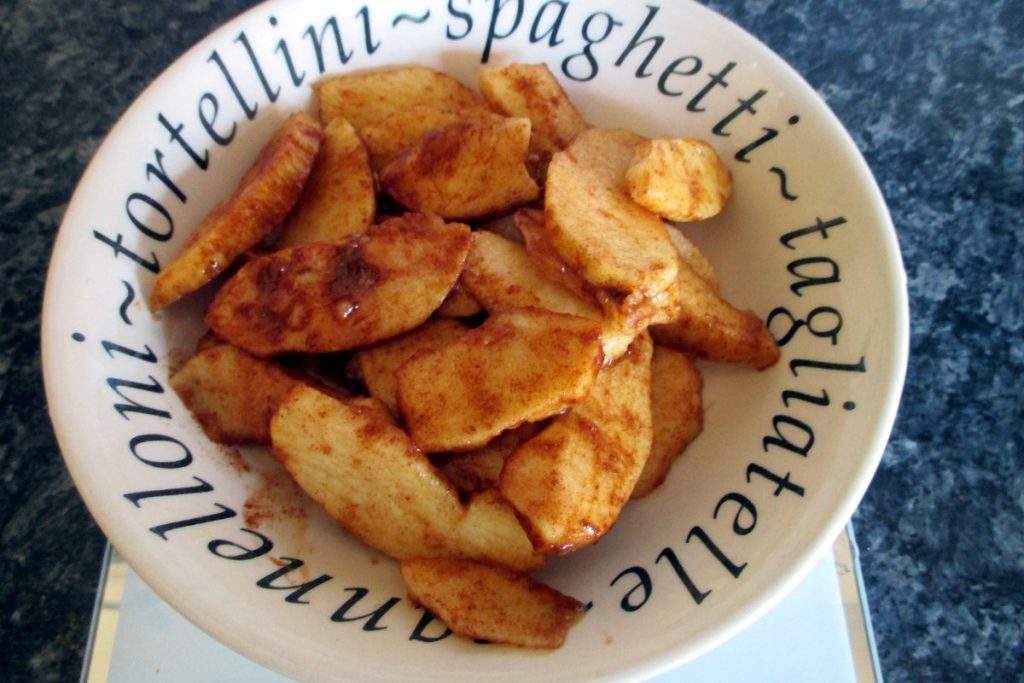 Schil de appel, verwijder het klokhuis en snijd hem in plakjes. Meng met de kokosbloesemsuiker of rietsuiker, de kaneel en ook met het citroensap om te voorkomen dat de appel te donker wordt, maar ook om onze zoete vulling meer smaak te geven. Zet apart.