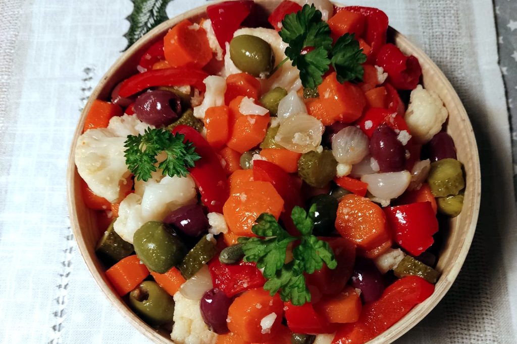 Ik herinner me dat er bij ons thuis, toen ik klein was, altijd een grote hoeveelheid insalata di rinforzo werd gemaakt die vervolgens bij elke maaltijd tot Driekoningen weer uit de koelkast werd gehaald. Hij blijft namelijk heel lang goed omdat er, naast de bloemkool dat de basis van deze salade vormt, veel augurken worden gebruikt.