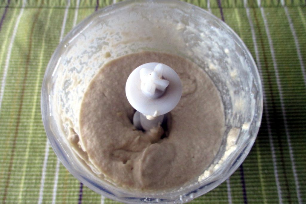 Begin met mixen en als het erg moeilijk is, voeg dan beetje bij beetje water toe. Proef en breng op smaak met zout. Ik laat het licht gezouten omdat ik het ook met jam gebruik voor een zoete snack.