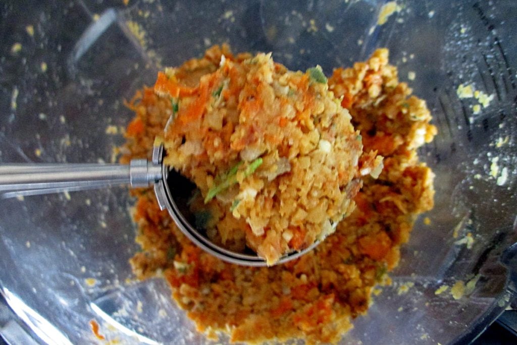 Pulseer de blender zodat alles goed wordt gehakt en gemengd zonder er een puree van te maken. Zo blijven er stukjes over die de balletjes meer textuur geven.