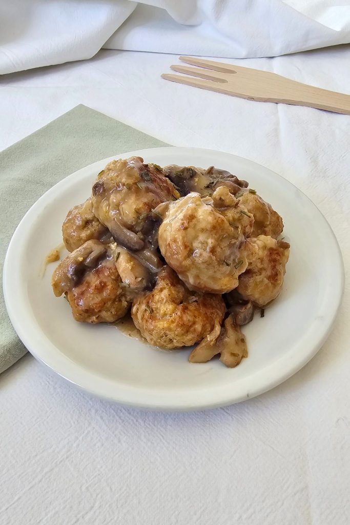 De sappige gehaktballen met champignons zijn een onweerstaanbaar gerecht dat de zachtheid van vleesgehaktballen combineert met de rijke en omhullende smaak van champignons. Perfect voor een lunch of diner met het gezin, deze gehaktballen worden gekookt in een heerlijke champignonsaus, die ze nog smaakvoller en sappiger maakt. Eenvoudig te bereiden maar met een verbluffend resultaat, dit recept is ideaal voor wie houdt van authentieke, romige en smaakvolle gerechten, perfect om te serveren met een lekker bijgerecht of een stuk brood om de saus mee op te vegen!