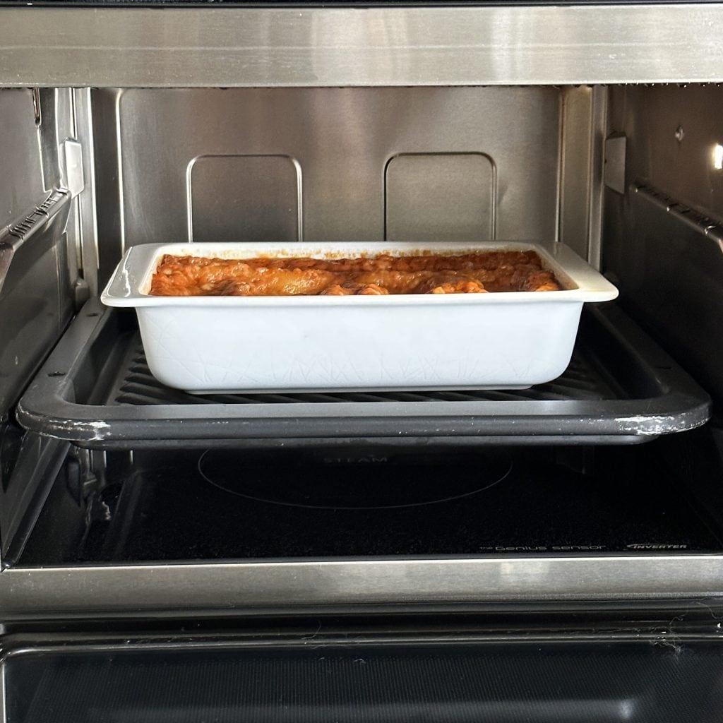Nu kun je verdergaan met de tweede kookstap, waarbij je alleen de grillfunctie gebruikt om de cannelloni in de magnetron te gratineren.