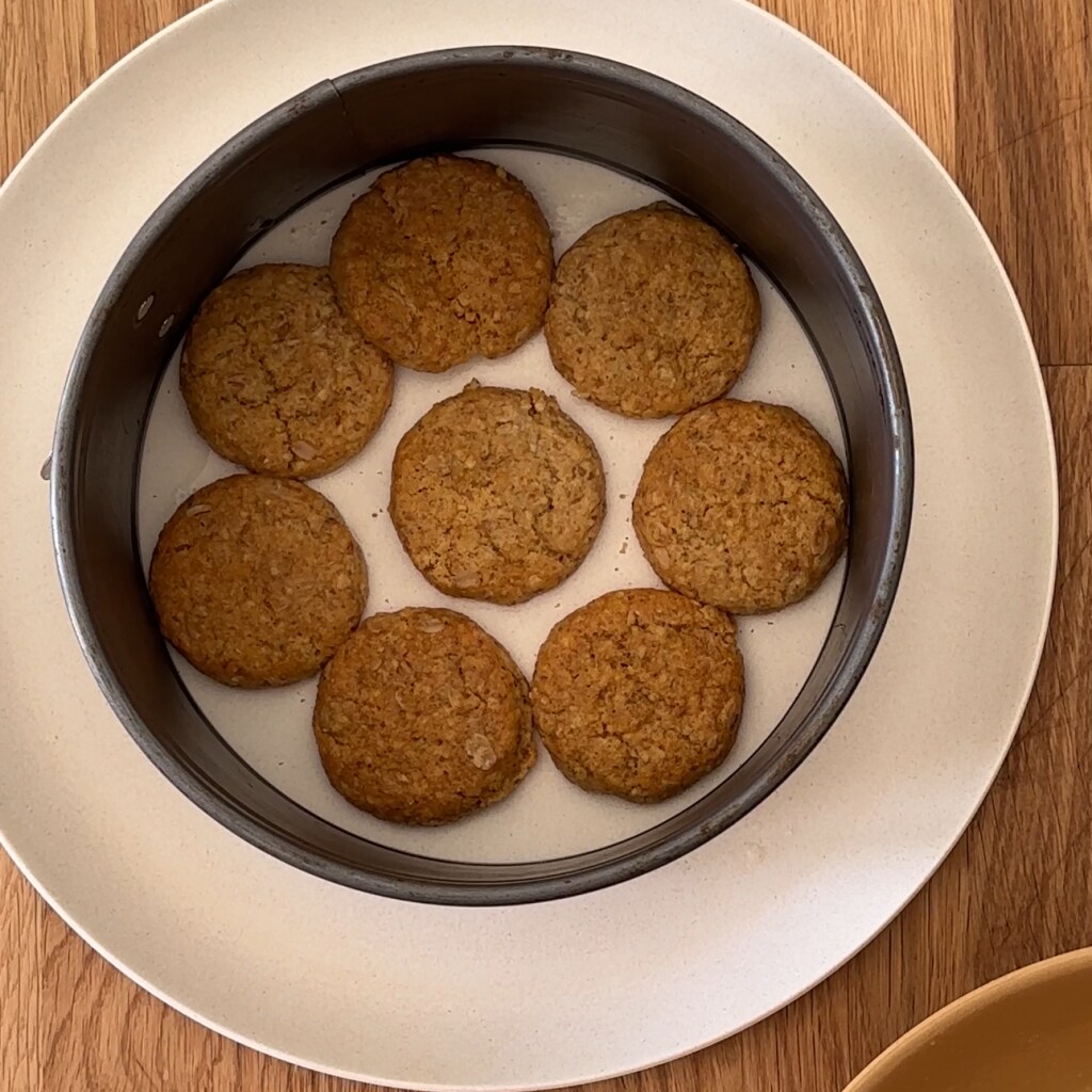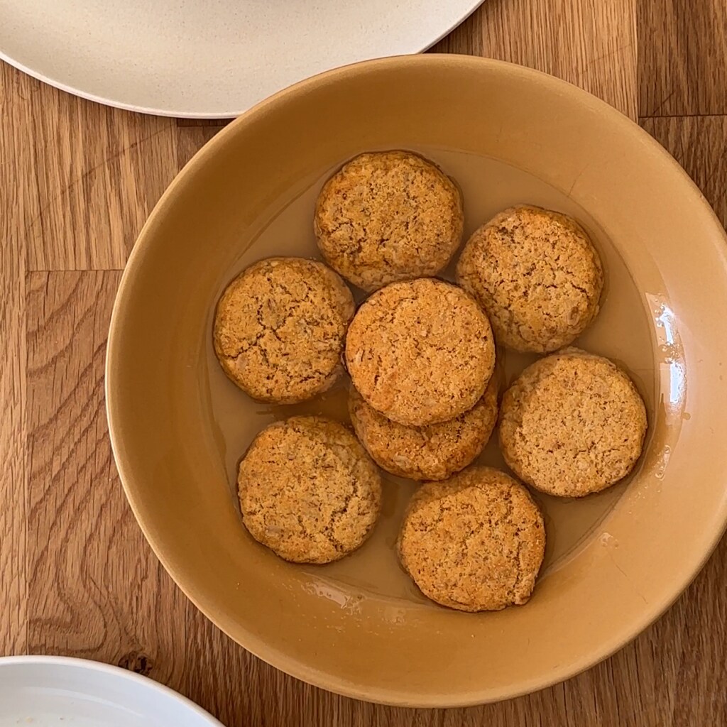 Doop de koekjes in het ananassap en leg ze op de schaal.