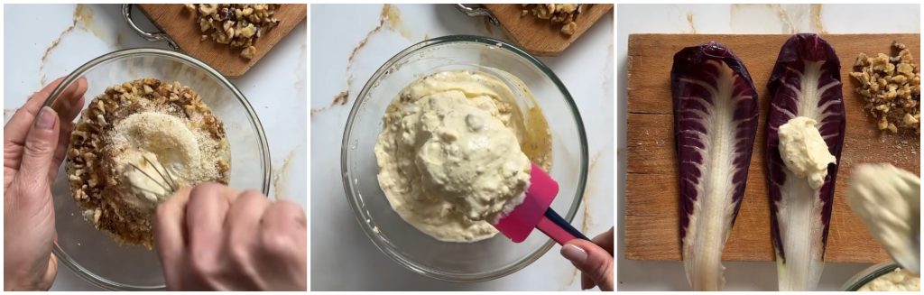 Voeg ook een deel van de gehakte walnoten toe, bewaar een beetje voor op de rolletjes voordat u ze kookt.