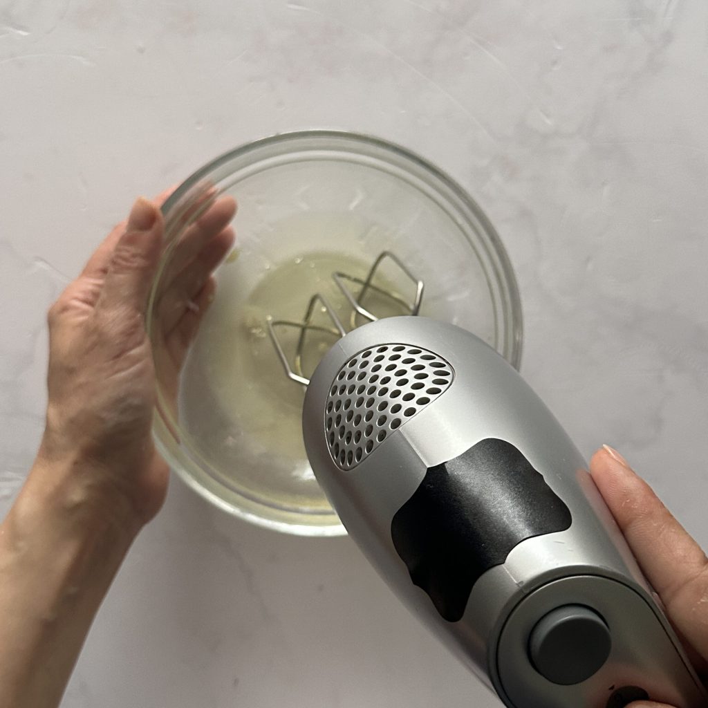 Met behulp van de elektrische garde, mix de eiwitten,