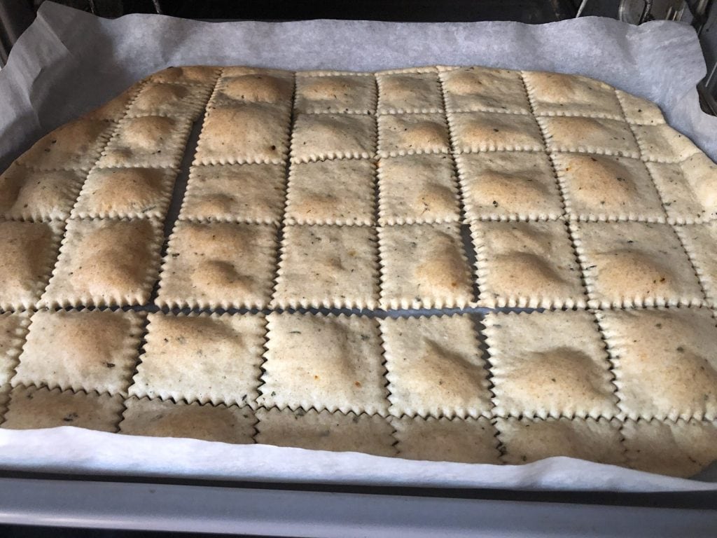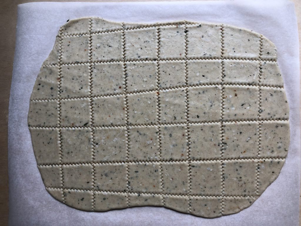 Rol het deeg dan uit met een deegroller tot een vrij dunne rechthoek. Houd er rekening mee dat hoe dunner het deeg is, hoe krokanter de crackers zullen zijn. Anders worden het zachte hapjes.